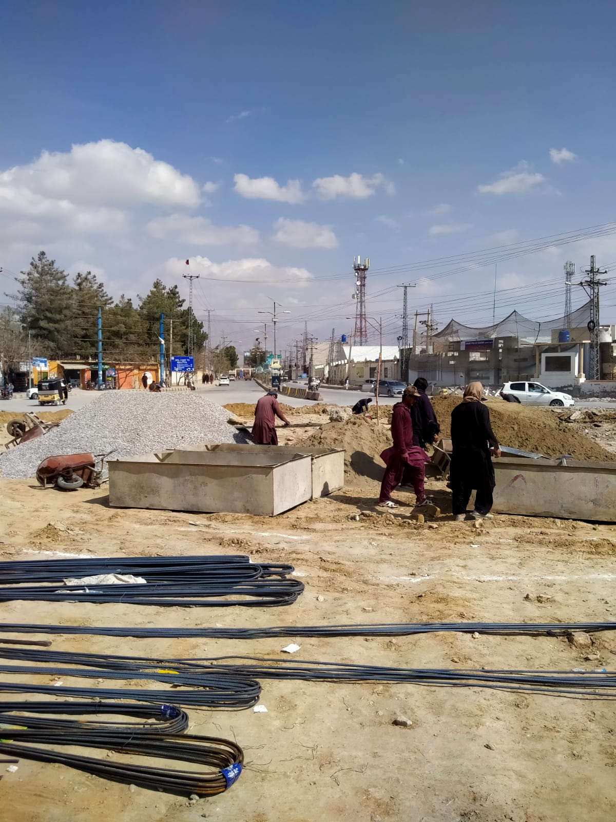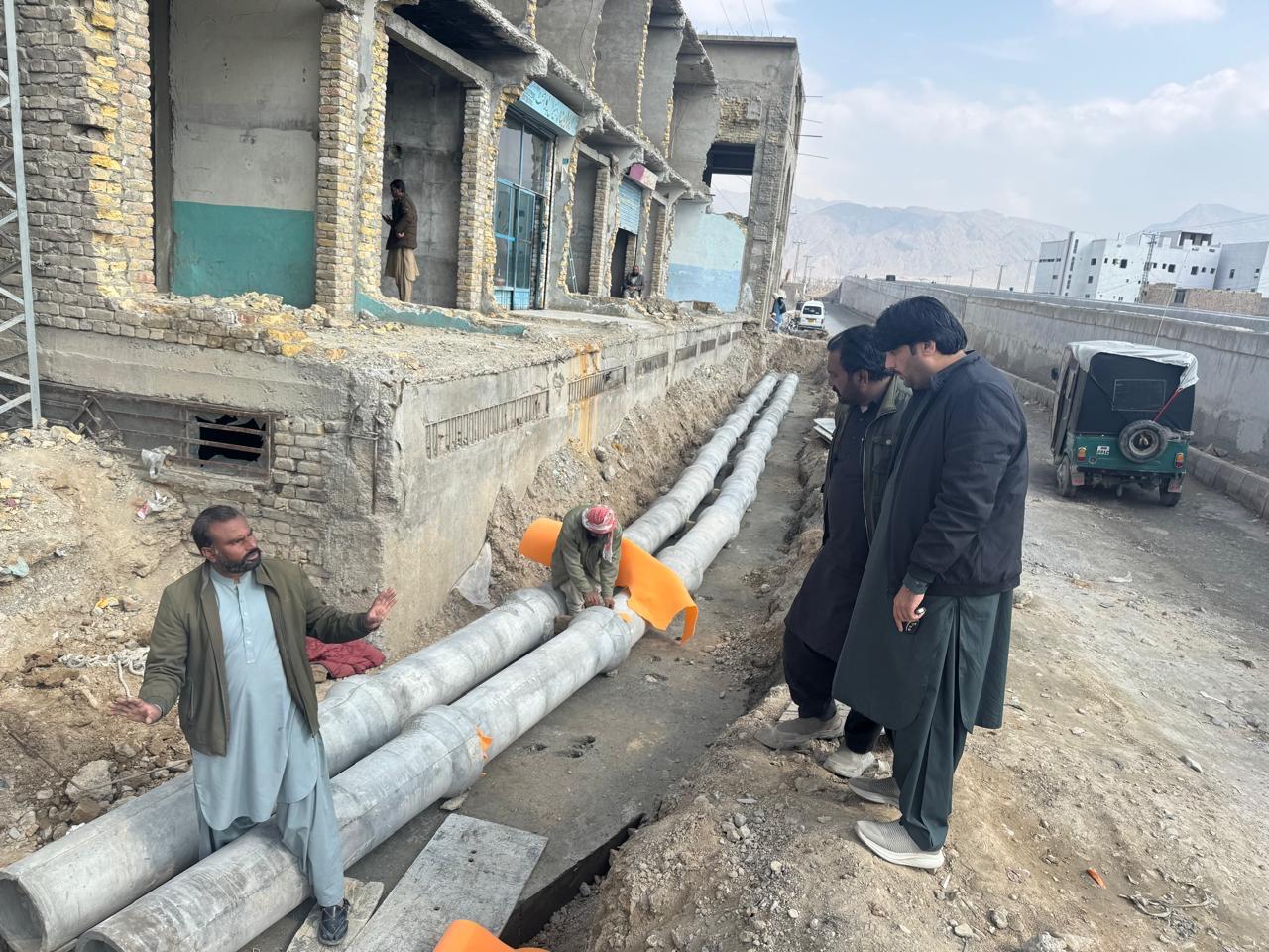 Development work on multiple infrastructure projects under the supervision of the Executive Engineer Roads Kuchlak Division is progressing at a rapid pace. These projects include the Navan Killi Main Road and the Airport Road Roundabout, both of which are expected to enter their final stages of completion soon.