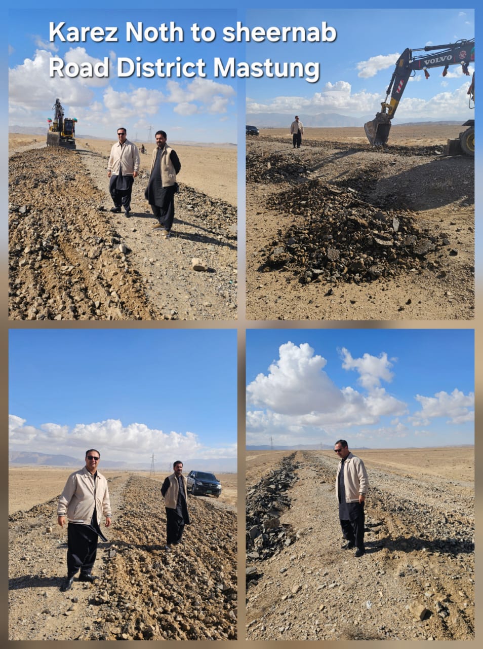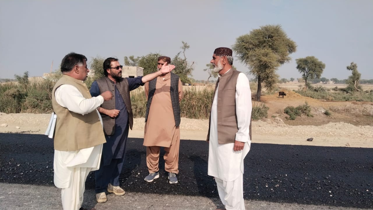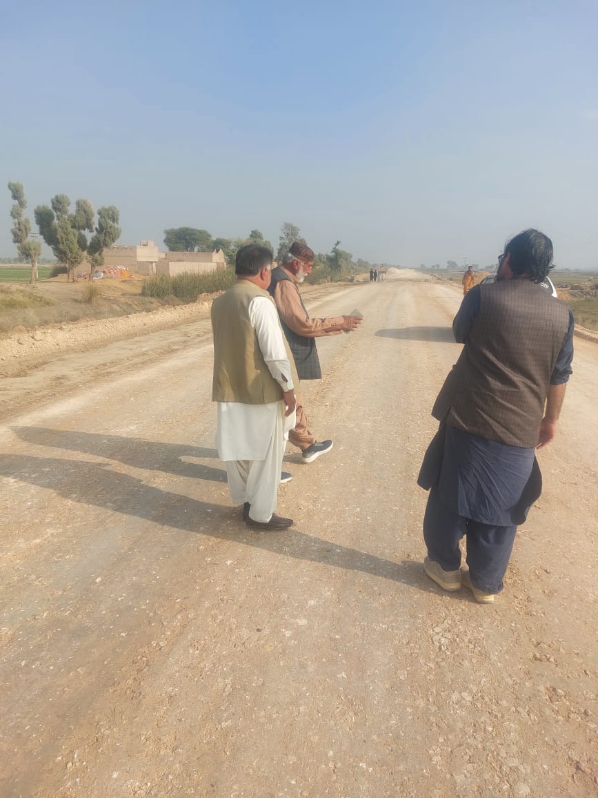 “SE Jaffarabad Circle, Engineer Arsala Khan Rind, inspected the ongoing construction work on the Sohbatpur–Kashmore Road. Other officials associated with the project were also present on the occasion. Engineer Arsala Khan reviewed the quality of work and directed the concerned authorities to further accelerate and improve the pace of work on the ongoing development project.”